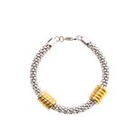 Pulseira Vintage. Confeccionada em metal prateado, com detalhes de dois elos dourados e fecho por gancho. A peça se encontra em ótimo estado, com levíssimas marcas de uso.