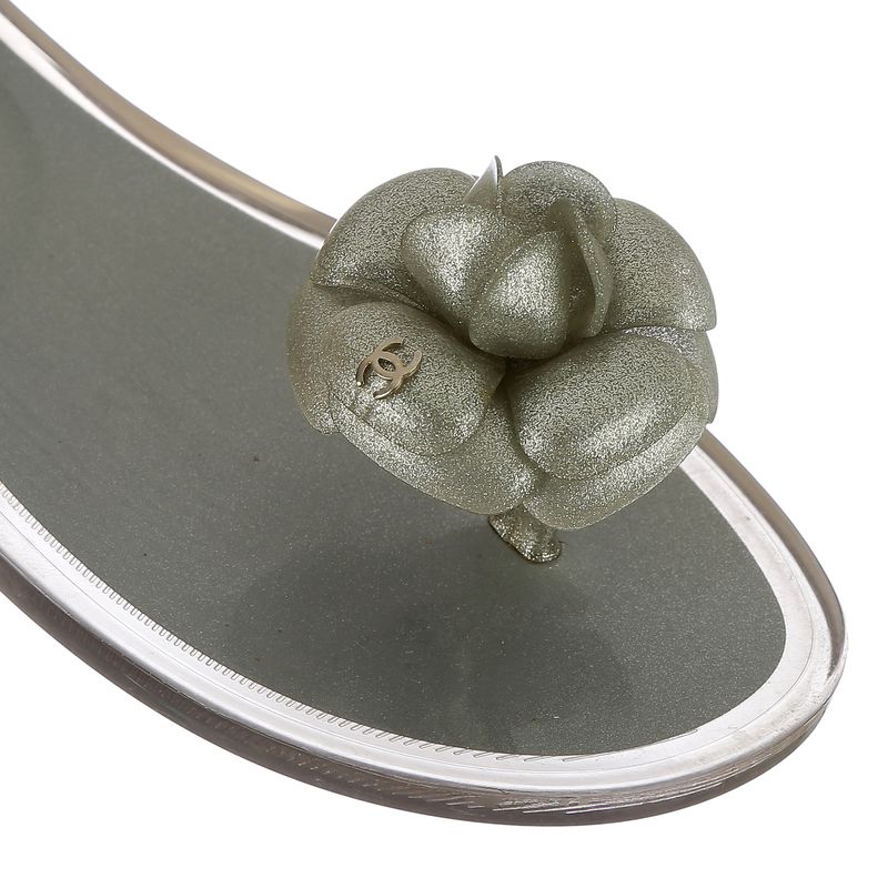 FemininoSapatosRasteirasSem SaltoRasteira Chanel Jelly Glitter Prateada