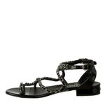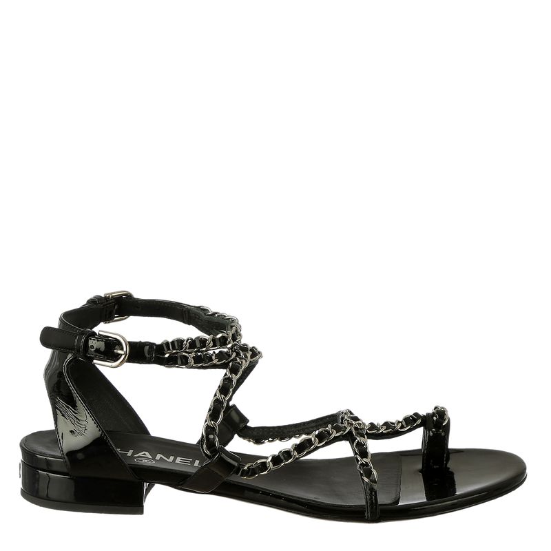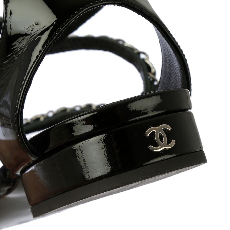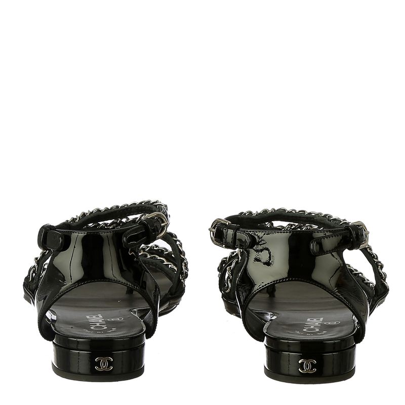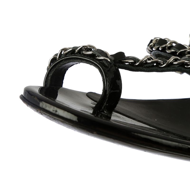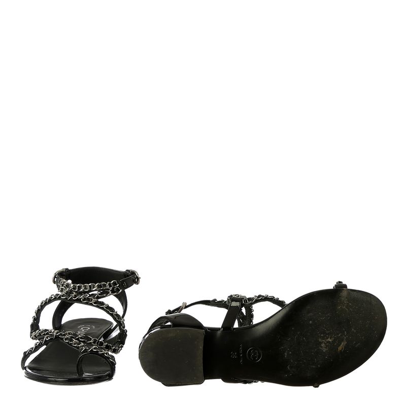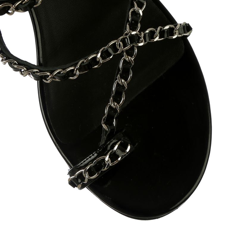 FemininoSapatosRasteirasSem SaltoRasteira Chanel Verniz Preto e Corrente