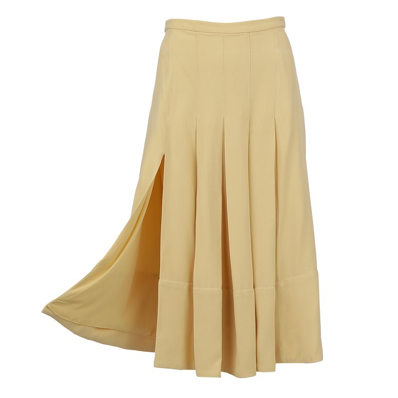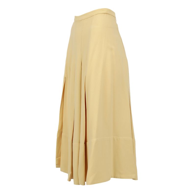 Saia da marca Cris Barros. Confeccionada em tecido bege plissado, comprimento midi e fecho na parte de trás por meio de zíper. A peça se encontra em ótimo estado, com levíssimas marcas de uso.