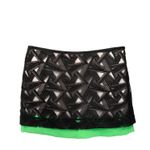 Saia da marca Diane Von Furstenberg. Confeccionada em rayon com poliéster na cor preta e barra na cor verde. Modelo mini, com fecho de zíper invisível na lateral esquerda. A peça se encontra em excelente estado, muito bem conservada.