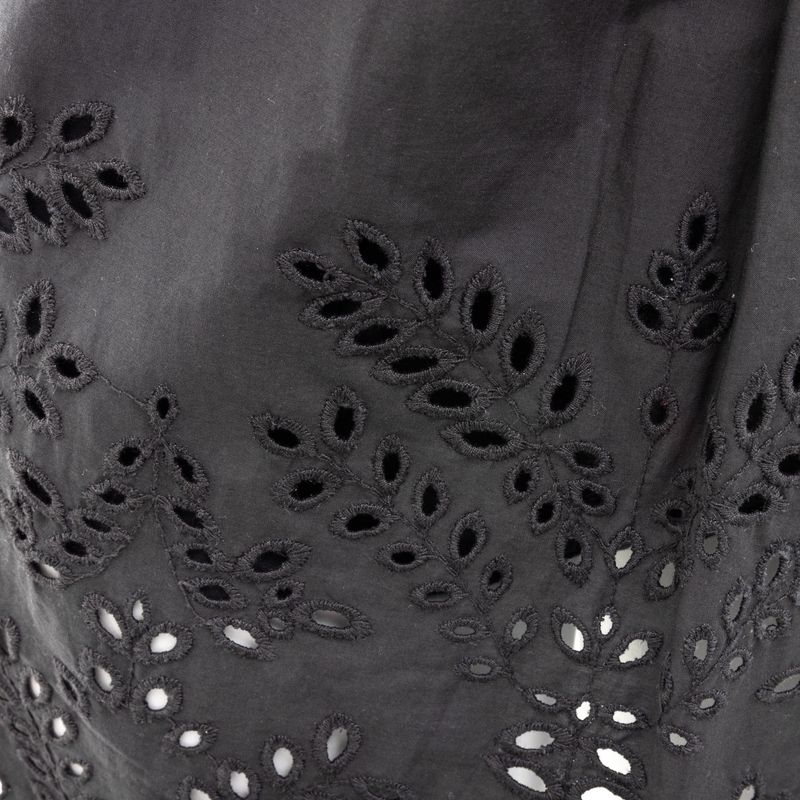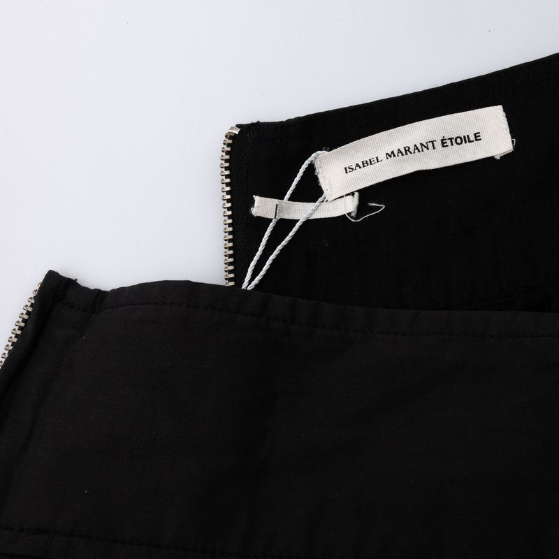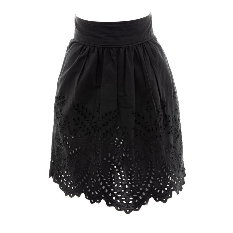 Saia Isabel Marant. Confeccionada 100% em algodão preto, conta com recortes lasie inferiores, leve plissado na parte superior, fecho por zíper e comprimento mídi. A peça se encontra em ótimo estado geral.