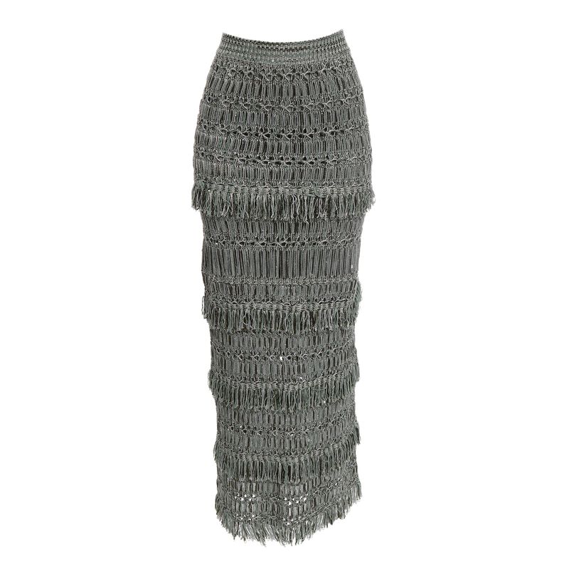 Saia Lolitta Midi Franja Lilás e Verde