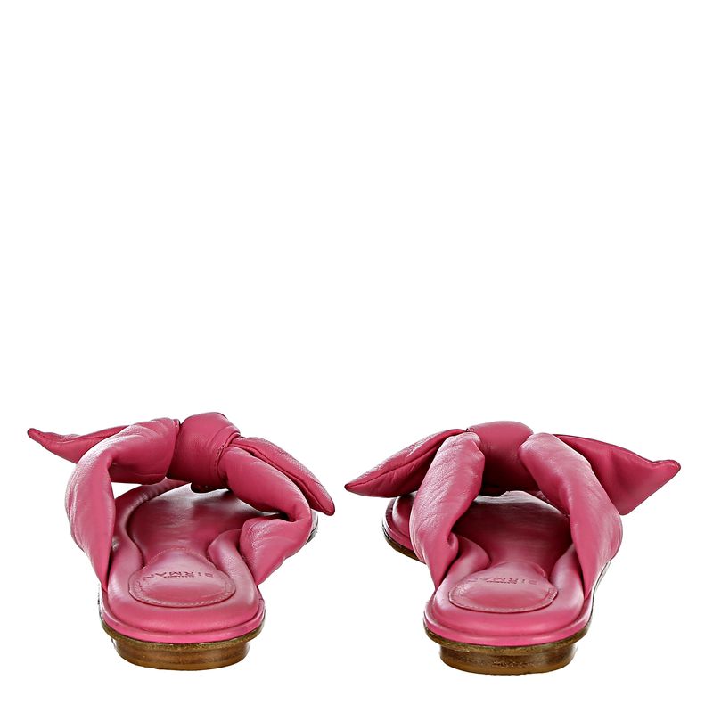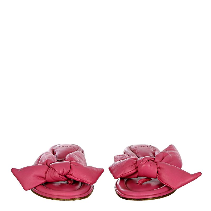 Sandália da marca Alexandre Birman. Confeccionada em couro na cor rosa. A sandália é modelo chinelo, com tiras grossas e detalhe de nó na frente. A peça se encontra em estado satisfatório, com leves marcas de uso aparentes.