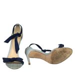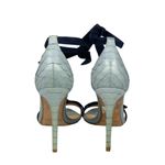 Sandália da marca Alexandre Birman tamanho 38 sola, aproximadamente 36-37 no Brasil. Modelo Clarita confeccionada em python na cor azul. Possui salto alto de altura 10,5cm. Se encontra em bom estado de conservação, com desgastes no salto e na sola