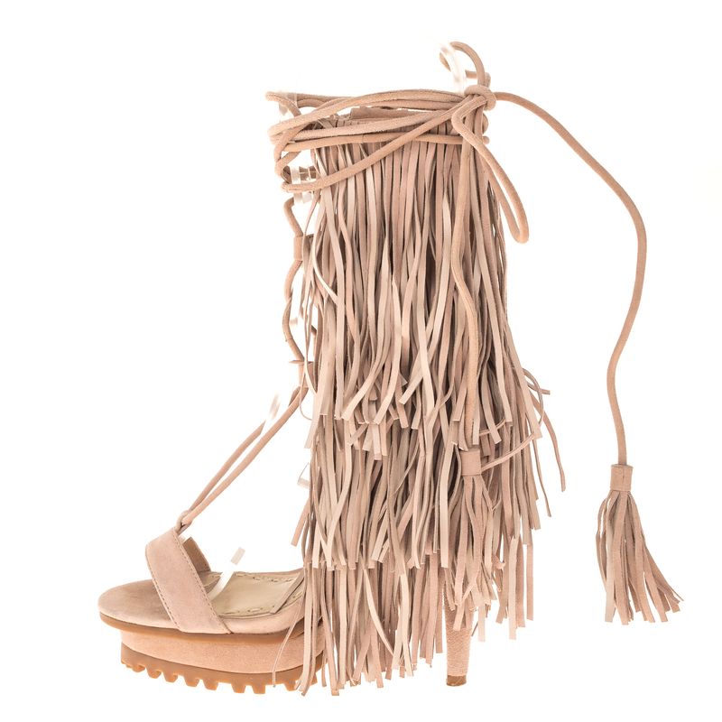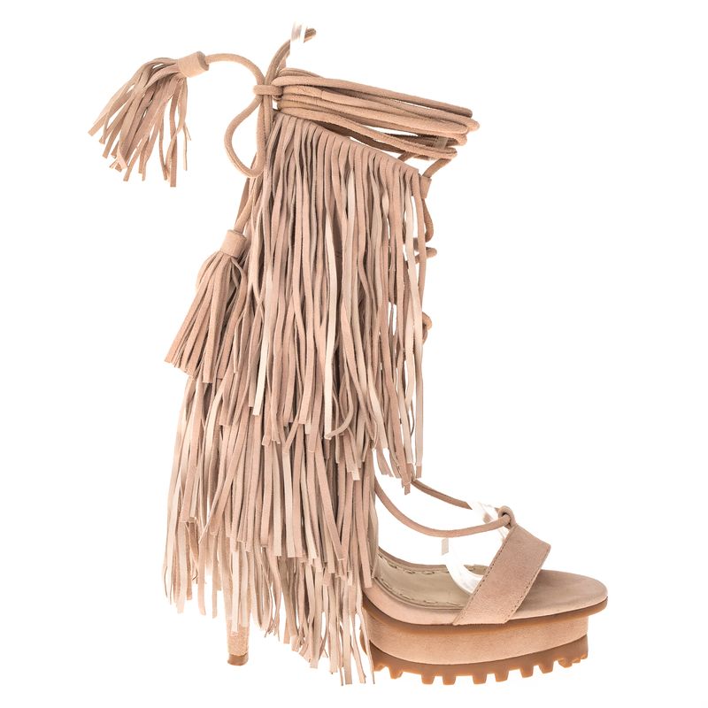 FemininoSapatosDe SaltoSandáliasSandália Andrea Bogosian Franjas Camurça Cinza