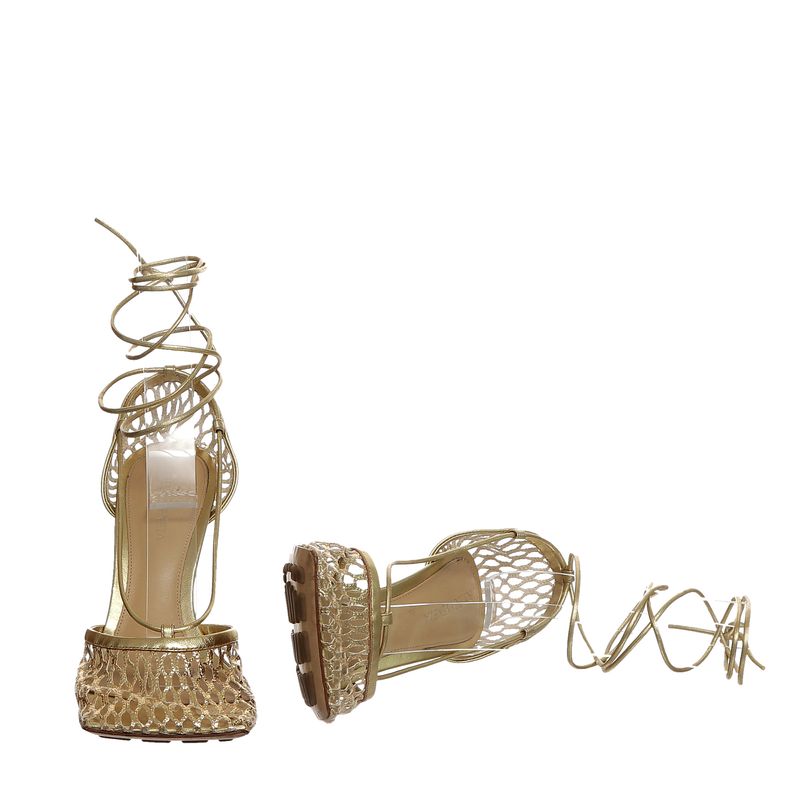FemininoSapatosDe SaltoSandáliasSandália Bottega Veneta Stretch Dourada