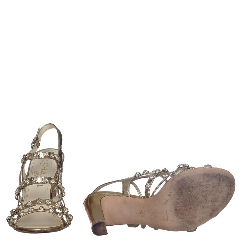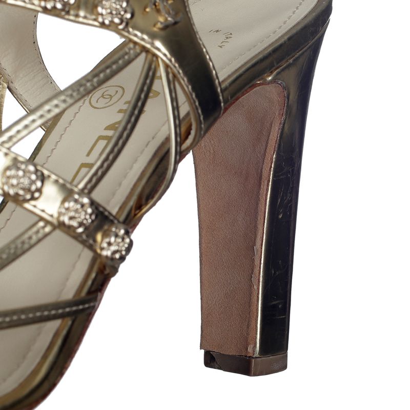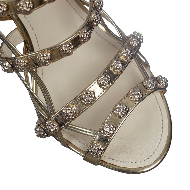 FemininoSapatosDe SaltoSandáliasSandália Chanel Camélias Dourada