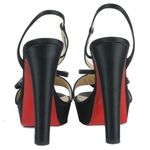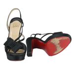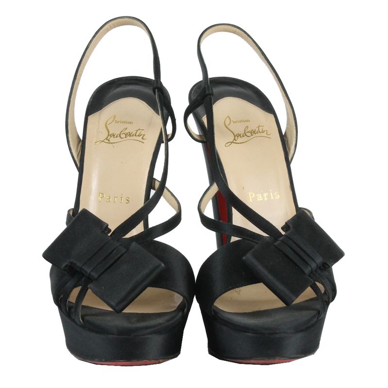 Sandália da marca Christian Louboutin tamanho 40 sola, aproximadamente 38/39 no Brasil. Confeccionado em cetim preto com detalhe de laço na frente. Possui salto alto de altura 14cm e meia pata de 3cm. Se encontra em ótimo estado de conservação, pouco usado.