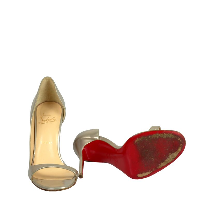 Sandália Christian Louboutin Verniz Champagne Metalizado