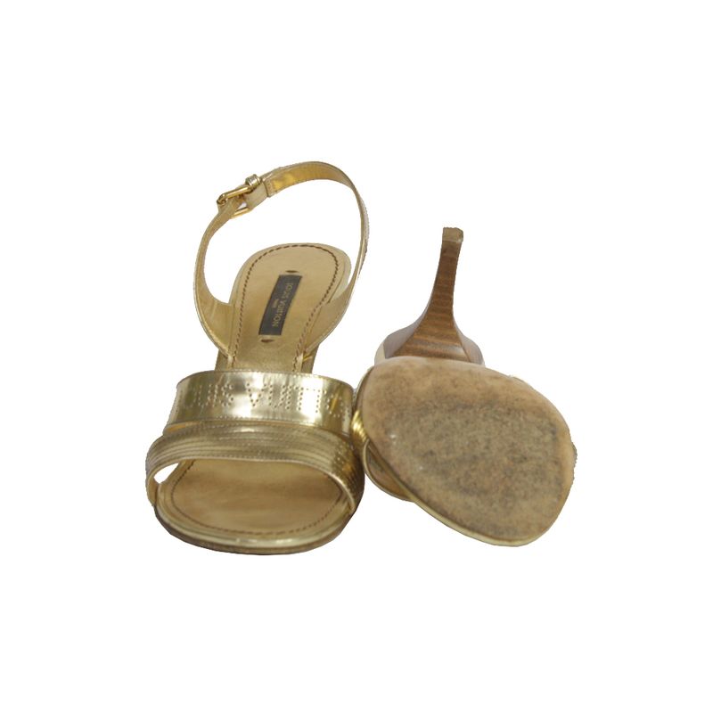 Sandália de salto tamanho 36 sola (aprox. 34/35 Brasil) da marca francesa Louis Vuitton, confeccionada em couro dourado. A sandalia é super confortavel com um salto médio (9cm). Se encontra em ótimo estado de conservação.