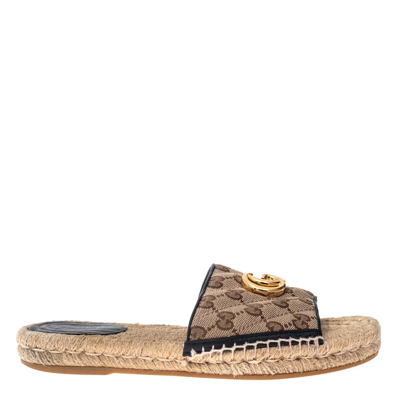 FemininoSapatosRasteirasSem SaltoSandália Gucci Mule Ráfia e Canvas Marrom
