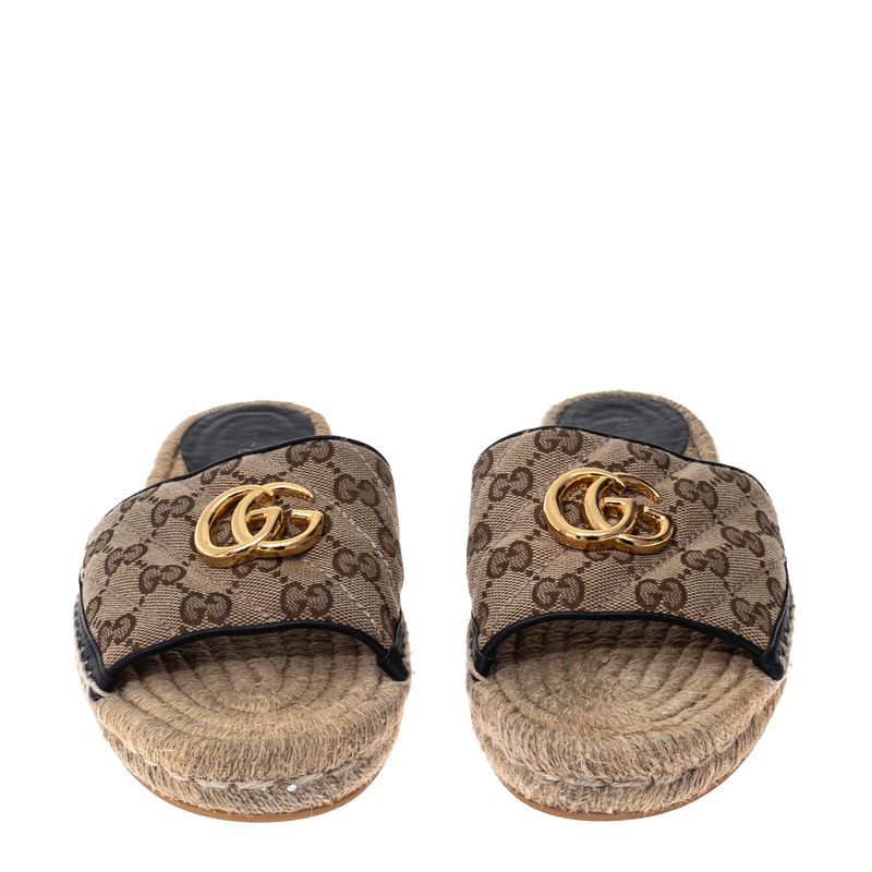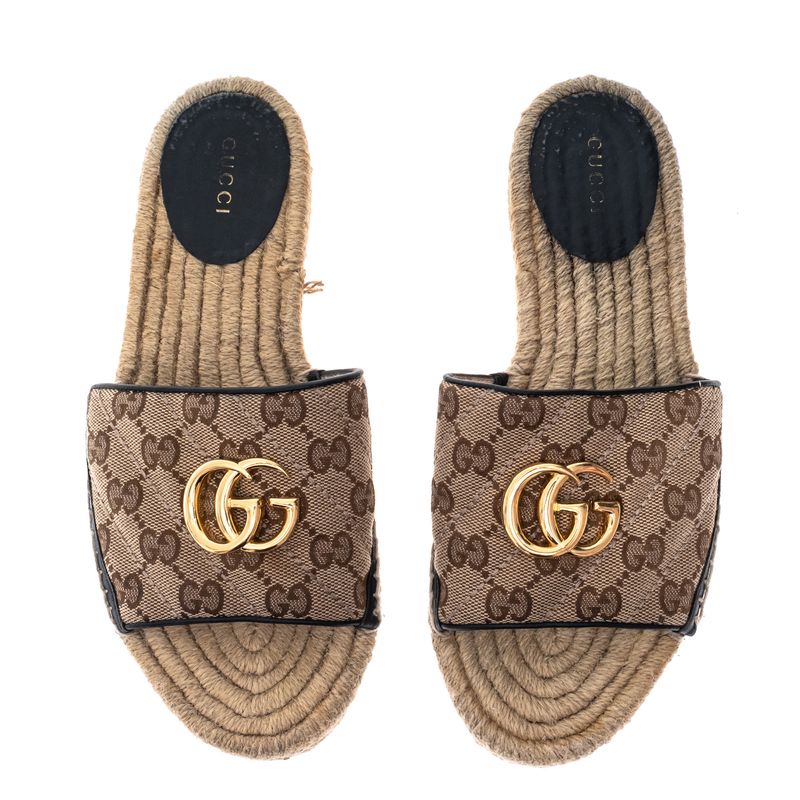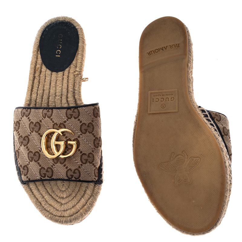 Sandália Gucci Mule Ráfia e Canvas Marrom