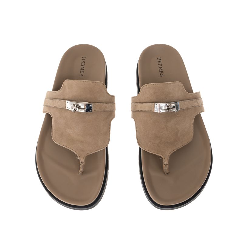 FemininoSapatosSandáliasSem SaltoSandália Hermès Empire Camurça Bege
