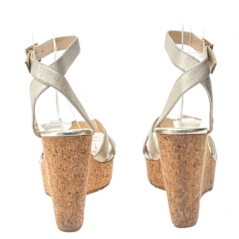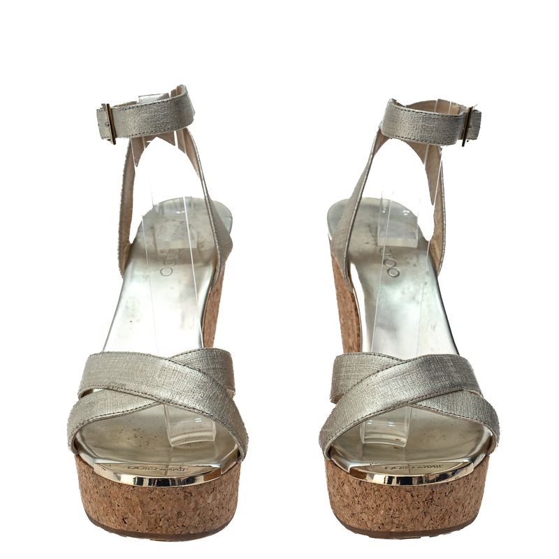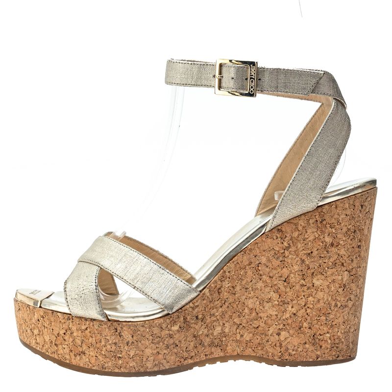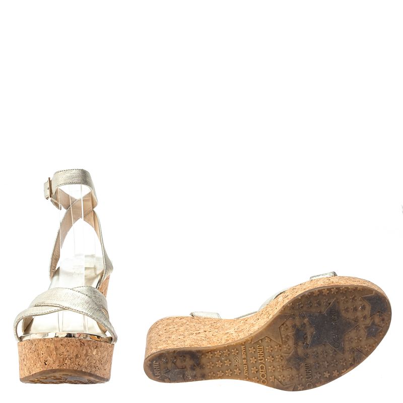 FemininoSapatosAnabelaDe SaltoSandália Jimmy Choo Anabela e Couro Metalizado