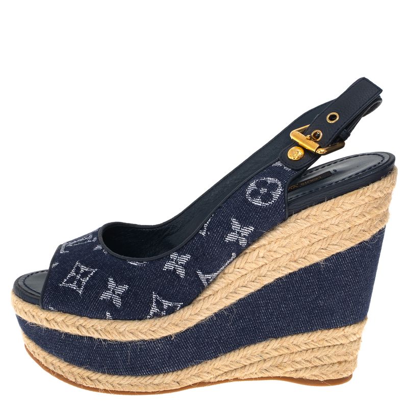 Sandália Louis Vuitton Anabela Monograma Jeans