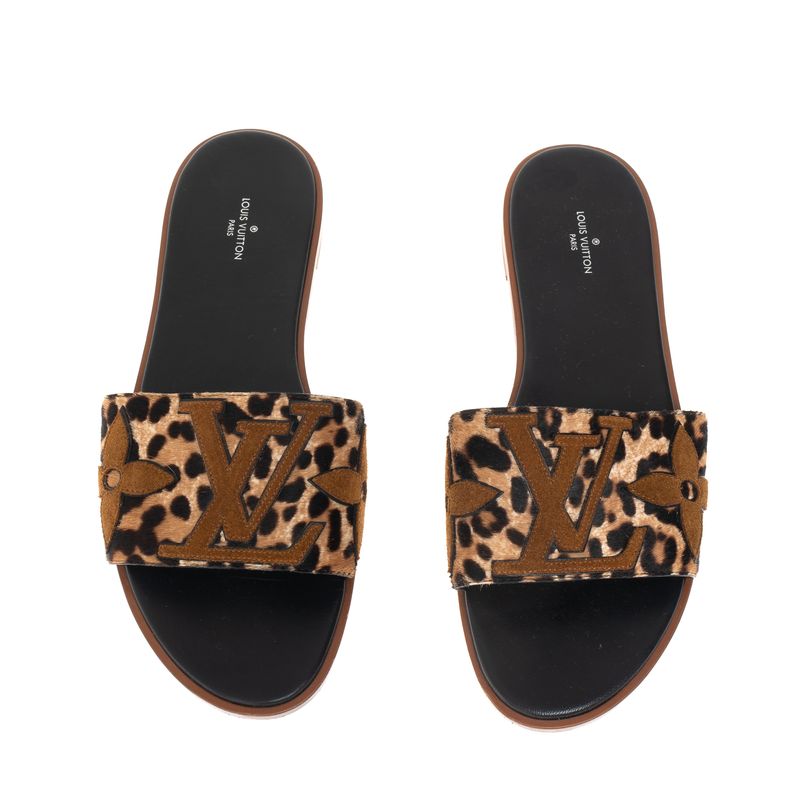 Sandália Louis Vuitton Rasteira Logo e Animal Print