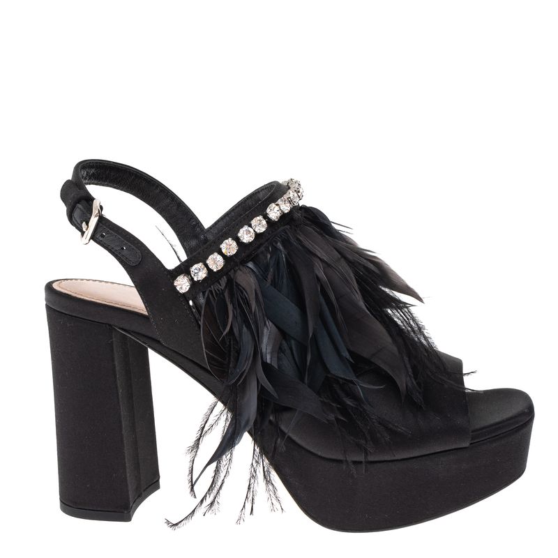 FemininoSapatosDe SaltoSandáliasSandália Miu Miu Cristais e Penas Preta
