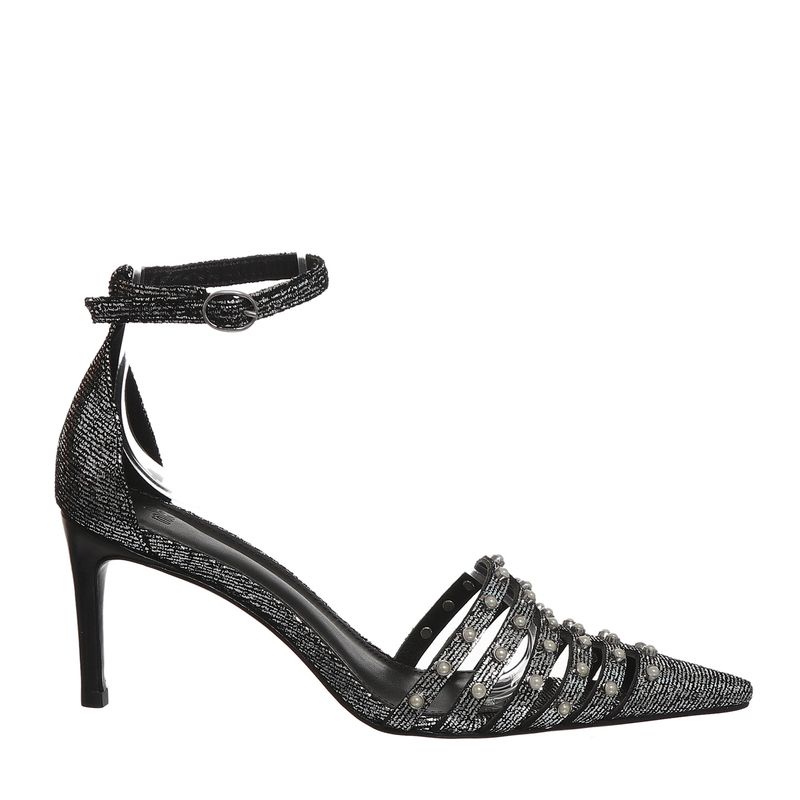 Sandália NK Scarpin Prateada com Esferas Peroladas