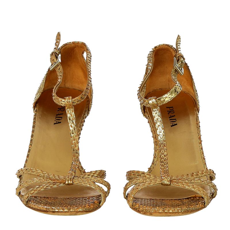 FemininoSapatosSem SaltoSandália Prada Anabela Dourada