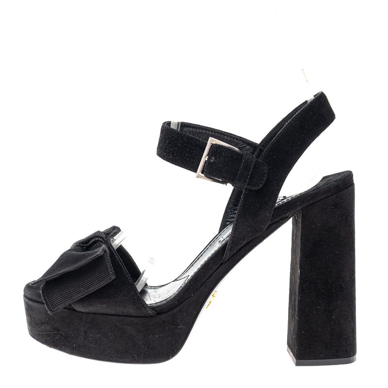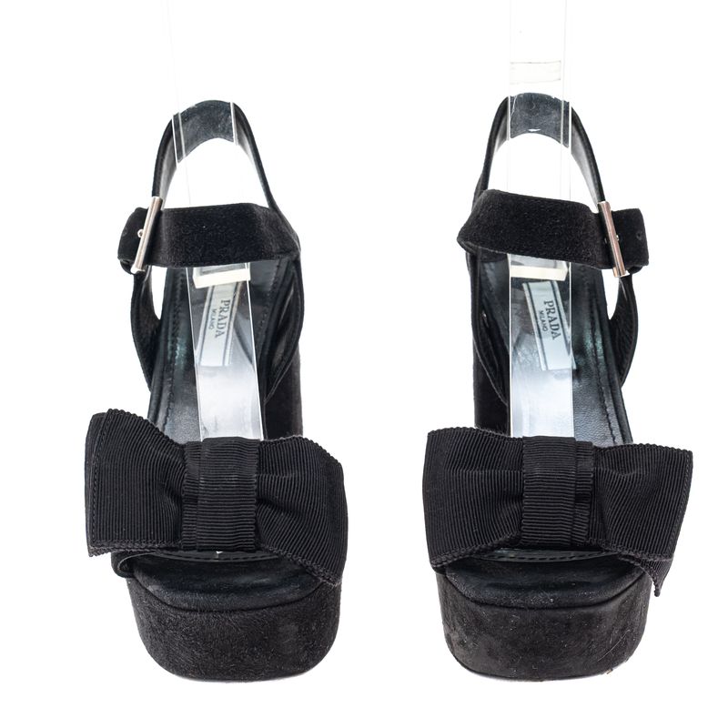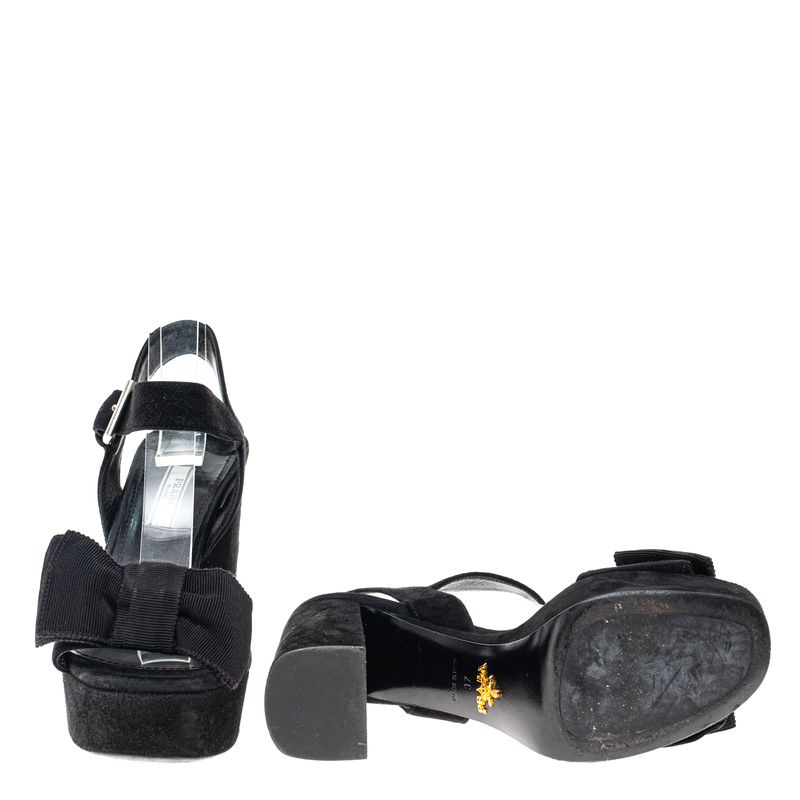 FemininoSapatosDe SaltoPlataformasSandalia Prada Camurça Laço Preta