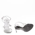 Sandália da marca Roberto Cavalli, tamanho sola 37 Itália, aproximadamente 35 Brasil. Confeccionado em couro na cor prateado, com detalhe de uma cobra, fecho por fivelas. Salto em metal na altura 12,5 cm. A peça se encontra em bom estado, com leves marcas de uso.