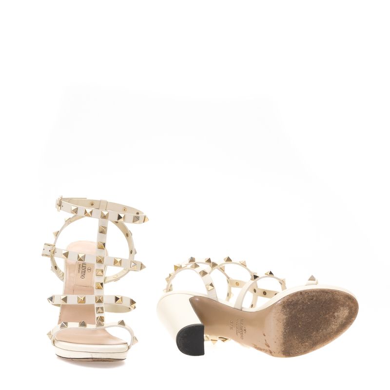 Sandália Rockstud Valentino Garavani Couro Branco