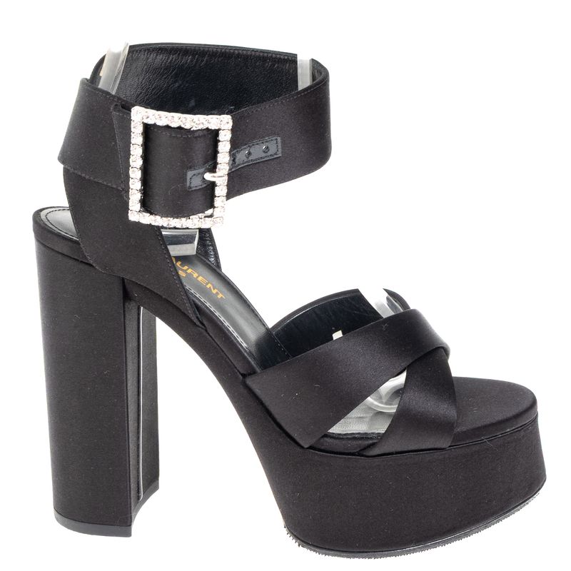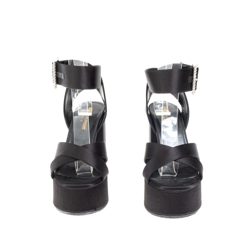 FemininoSapatosDe SaltoSandáliasSandália Saint Laurent Cetim Preto e Pedrarias