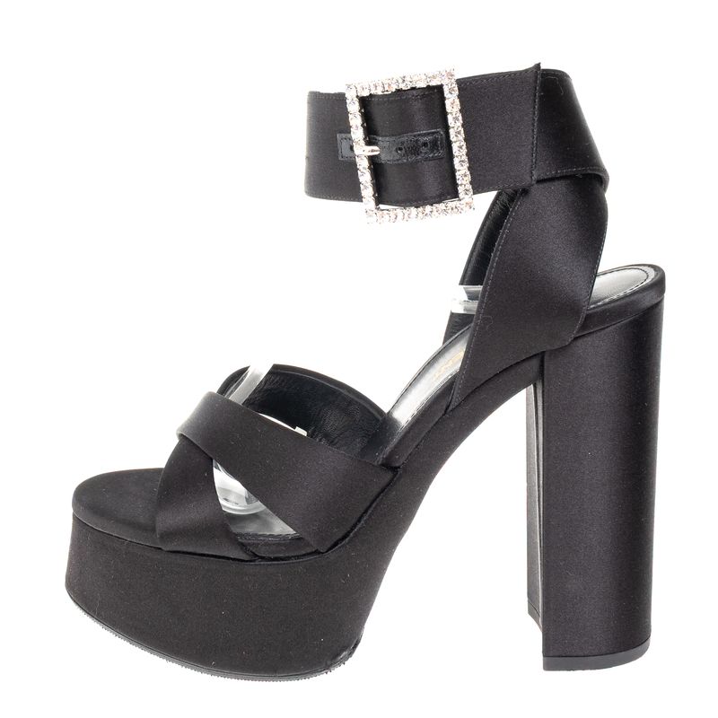 Sandália Saint Laurent Cetim Preto e Pedrarias