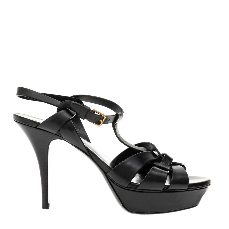 FemininoSapatosSandáliasSandália Saint Laurent Tribute Couro Preto