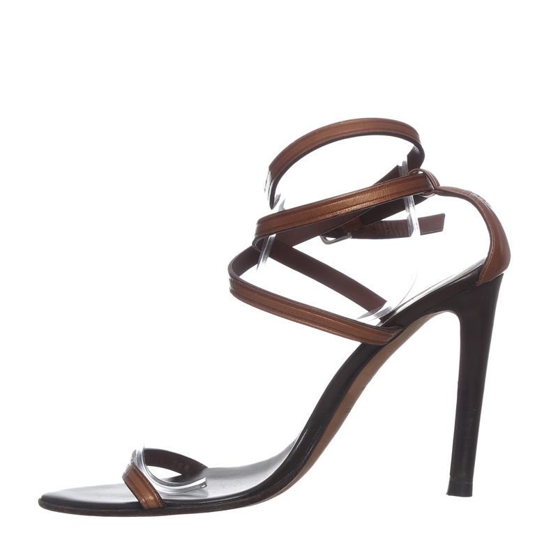 Sandália Sergio Rossi Couro Metalizado Bronze