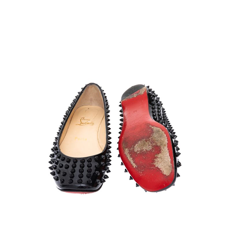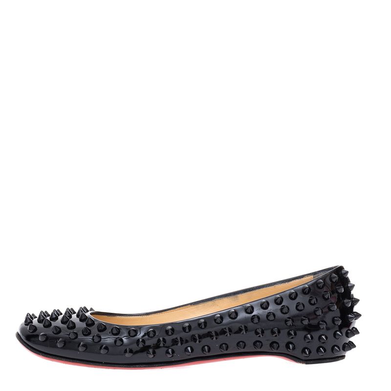 Sapatilha da marca Christian Louboutin. Confeccionado em couro envernizado na cor preta. O modelo possui aplicações de spikes. A peça se encontra em ótimo estado, com levíssimas marcas de uso.