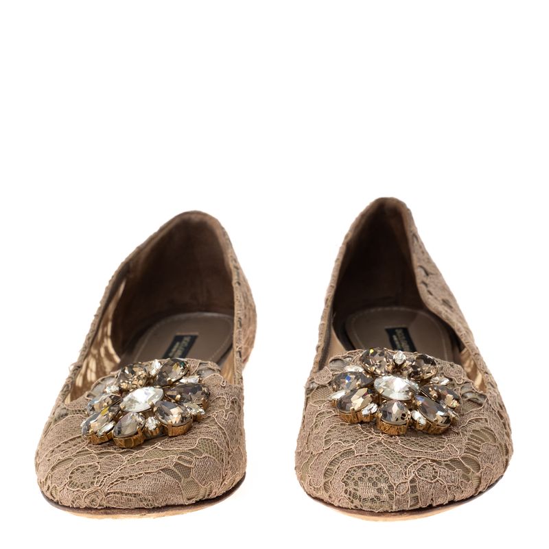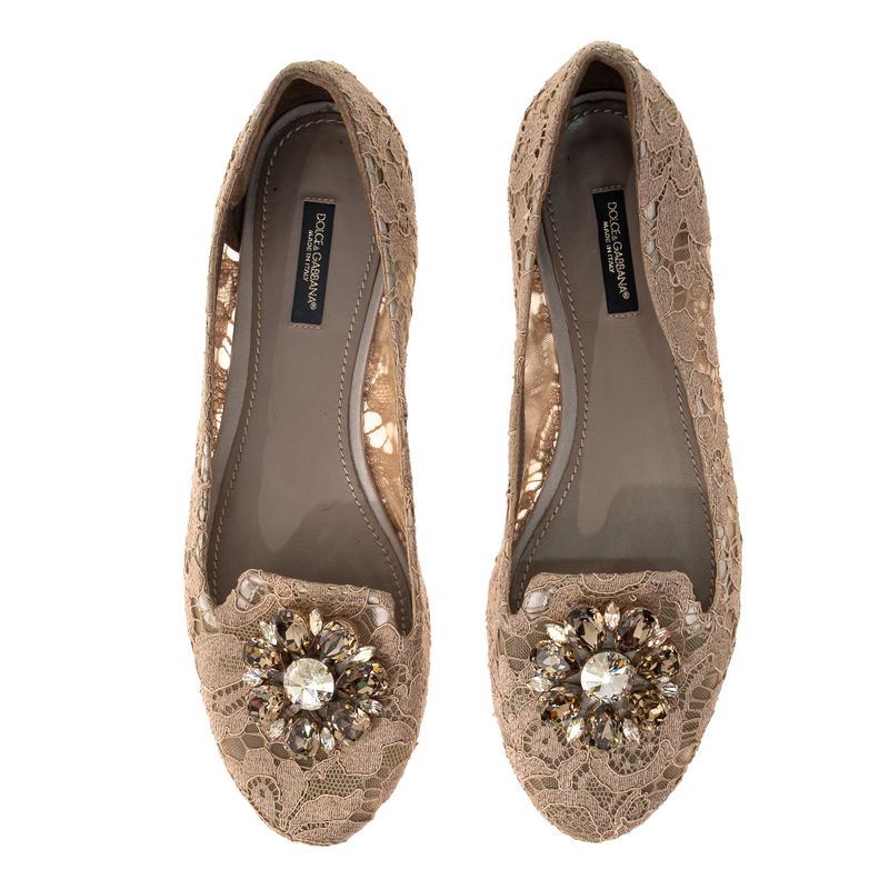Sapatilha Dolce & Gabbana Renda Bege e Pedrarias