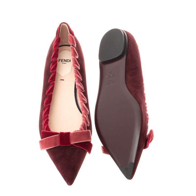 Sapatilha Fendi Bico Fino Veludo Vinho