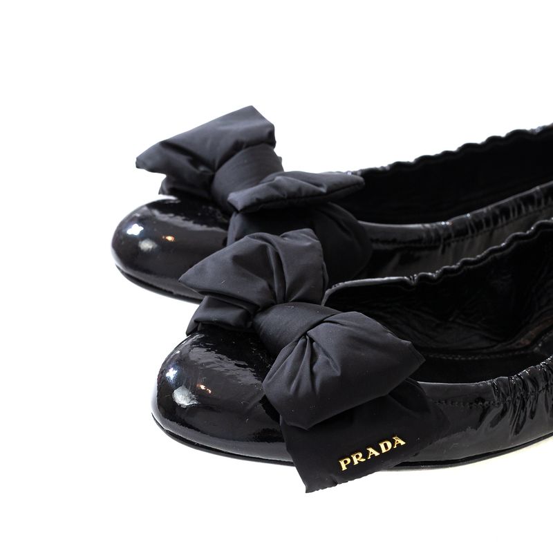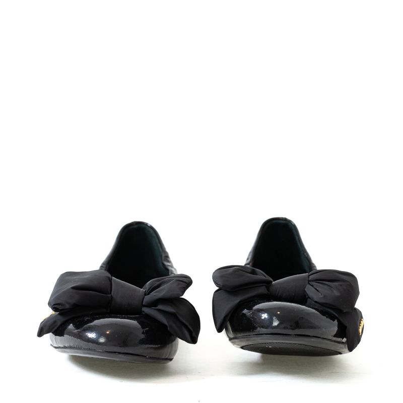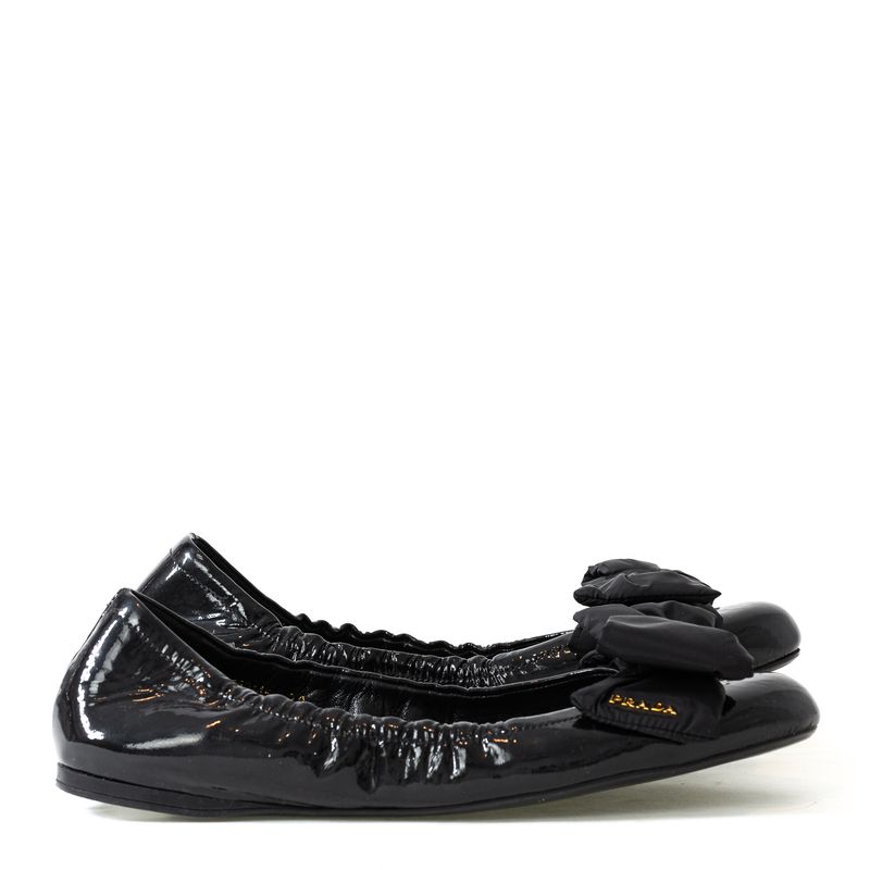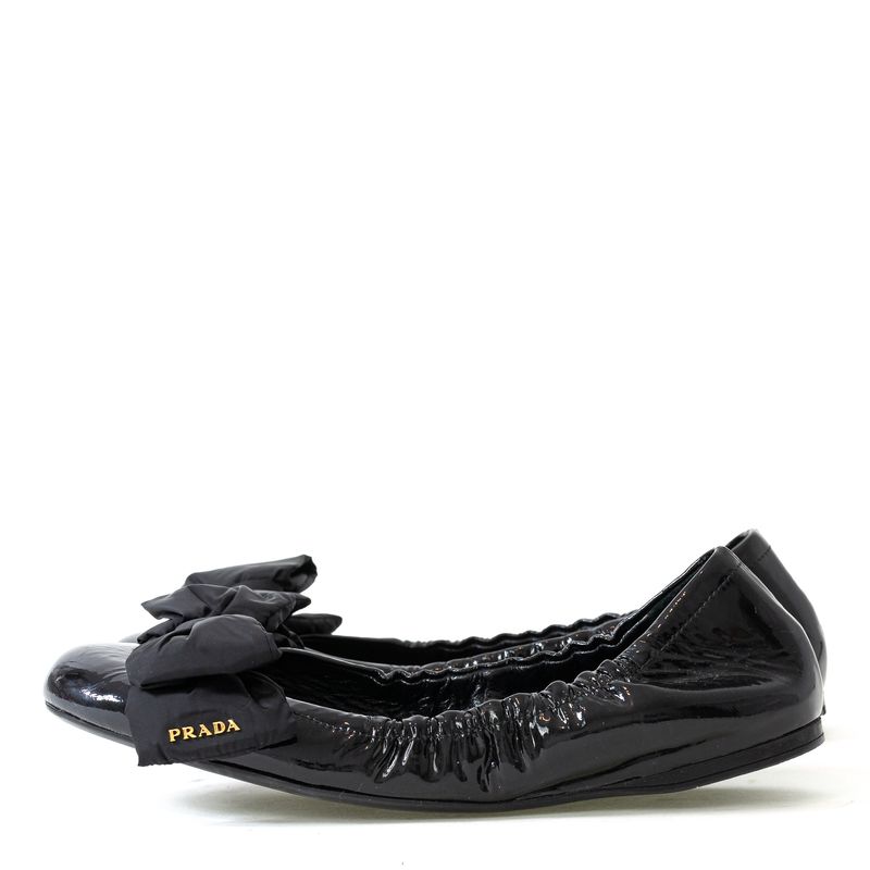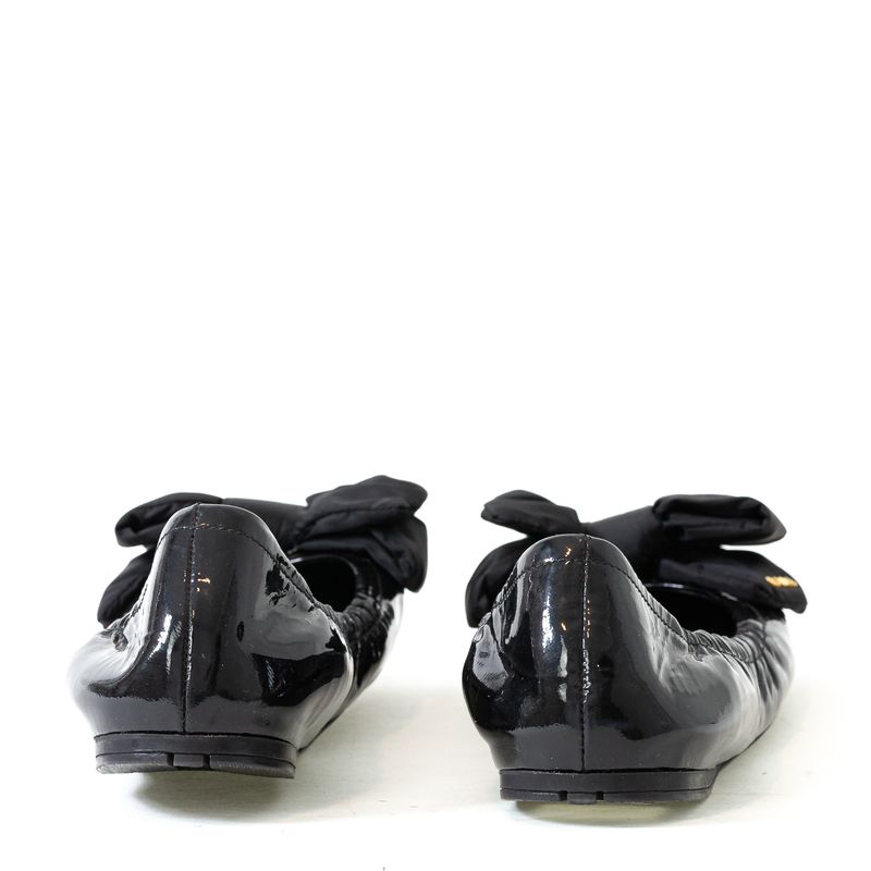 Sapatilha da marca Prada, tamanho 39 sola, aproximadamente 36/37 BR. Confeccionada em verniz preto, laços em nylon preto e solado emborrachado. A sapatilha conta com elásticos nas extremidades. Encontra-se em excelente estado de conservação.