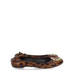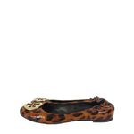 Sapatilha da marca Tory Burch, tamanho 7 1/2 sola, aproximadamente 36 Brasil, confeccionada em verniz com estampa de oncinha e emblema da marca em metal dourado. Encontra-se em excelente estado de conservação, usada uma vez.