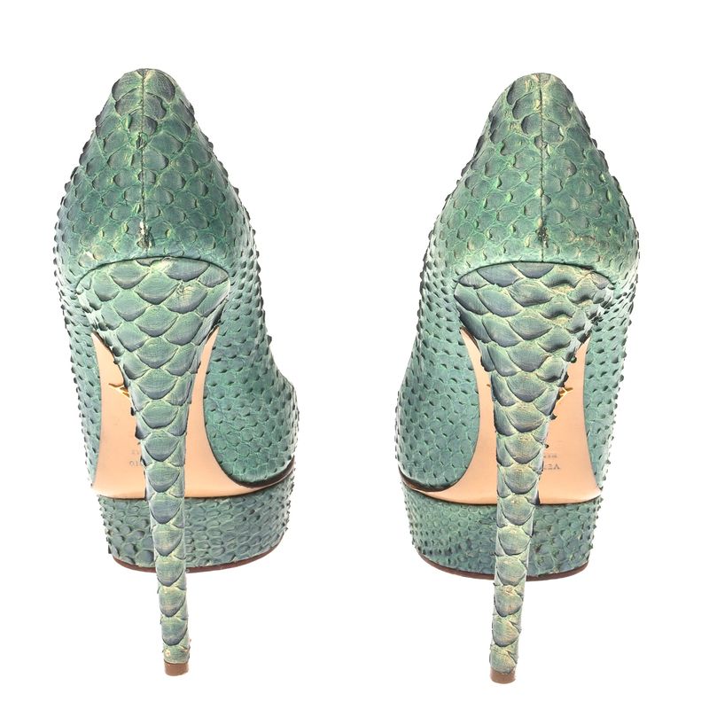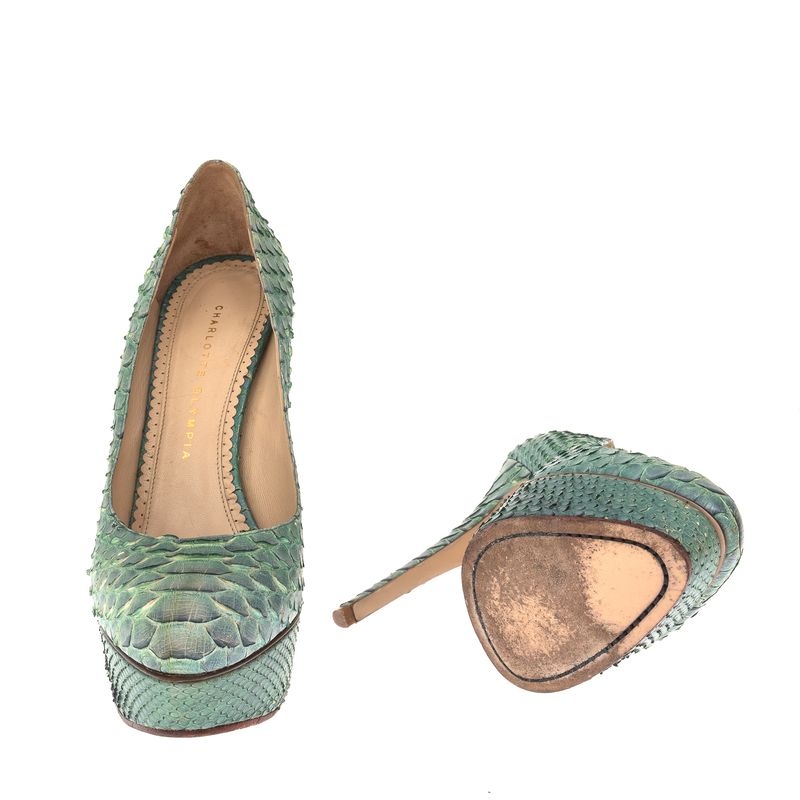 Sapato Charlotte Olympia Pump Couro Exótico Verde