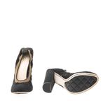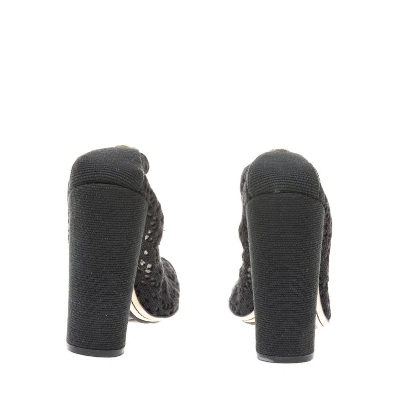 Sapato De Salto Chanel Elástico Crochê Preto