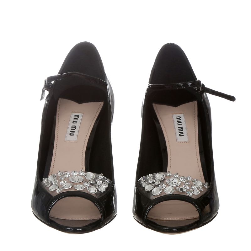 FemininoSapatosPeep ToeDe SaltoSapato Miu Miu Veniz Preto com Pedras