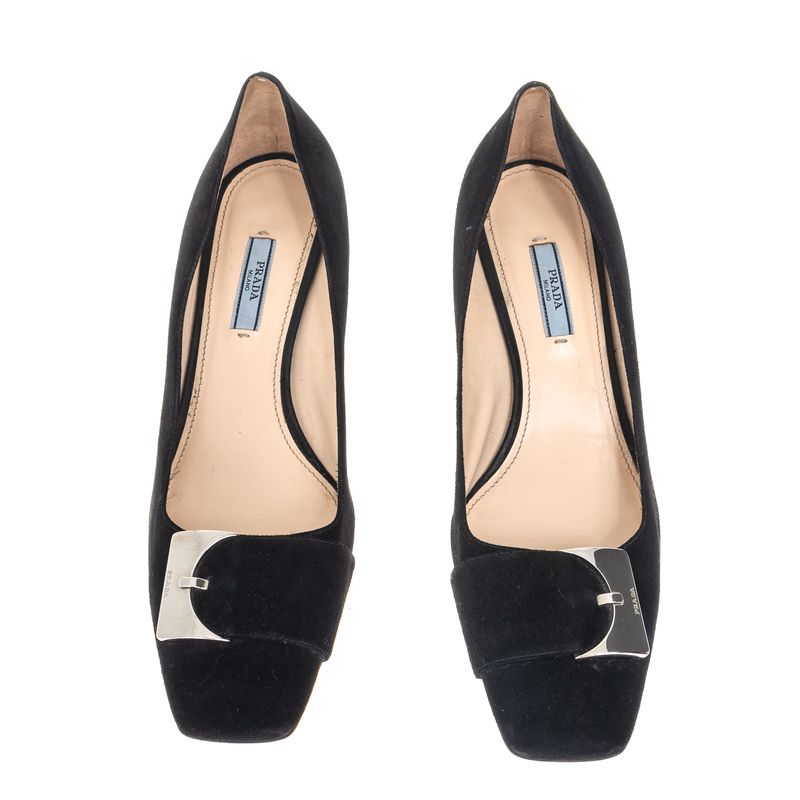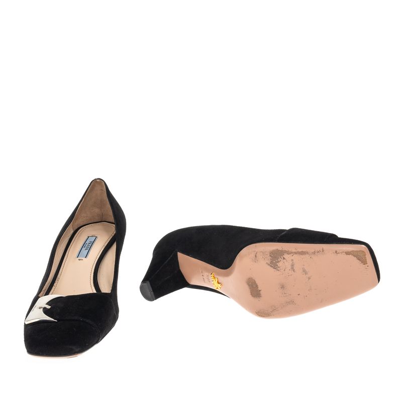 Sapato Prada Fivela Camurça Preto