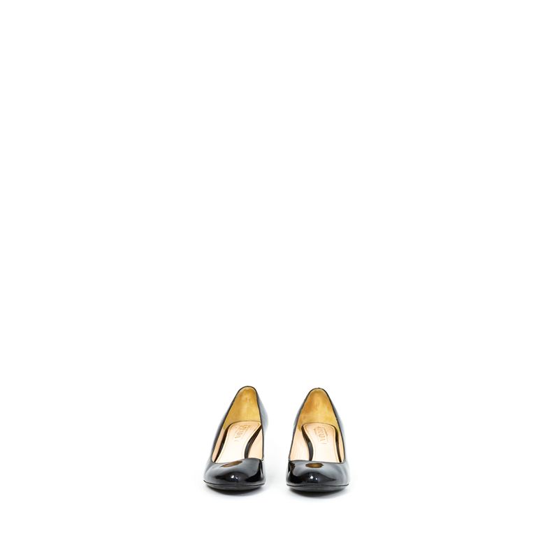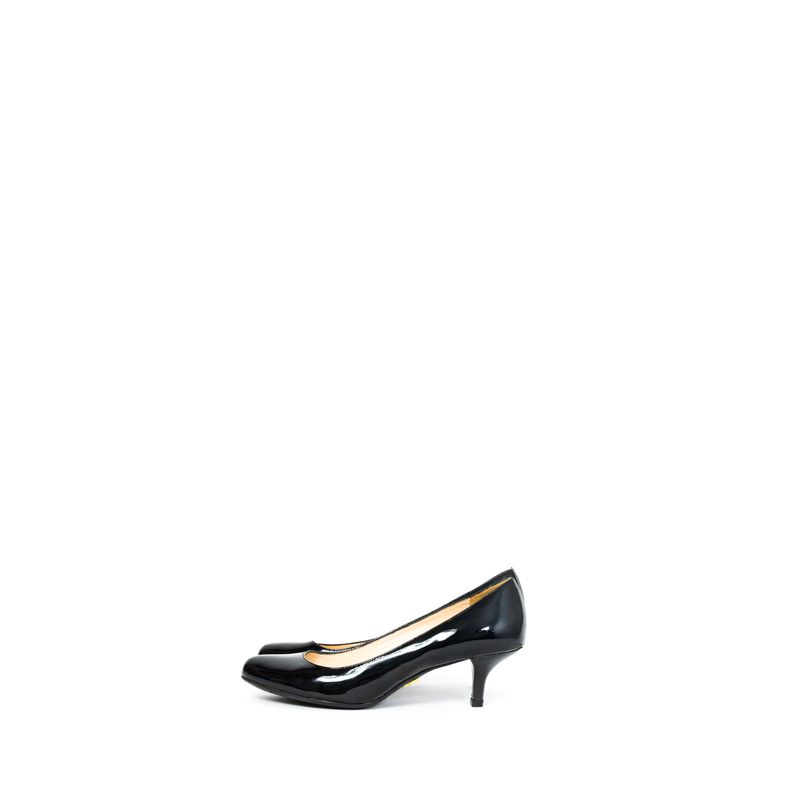 Sapato da marca Prada, tamanho 37 1/2 sola, aproximadamente 35-36 Brasil, confeccionado em verniz preto. O sapato possui saltinho de 5 cm de altura e bico arredondado. Encontra-se em bom estado de conservação, com desgastes.