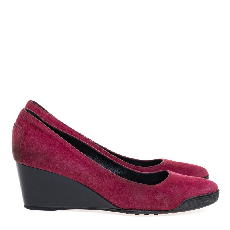 Sapato Tods Camurça Vinho Salto Anabela