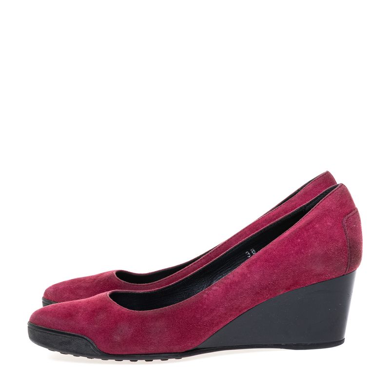 FemininoSapatosScarpinsDe SaltoSapato Tods Camurça Vinho Salto Anabela