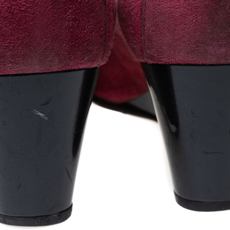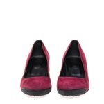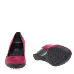 Sapato da marca Tod's. Confeccionado em camurça na cor vinho e salto em borracha preta. Modelo possui salto anabela e detalhe em borracha no bico da peça. A peça contém marcas de uso expressivas, com marcas ao longo da camurça.