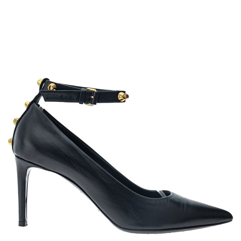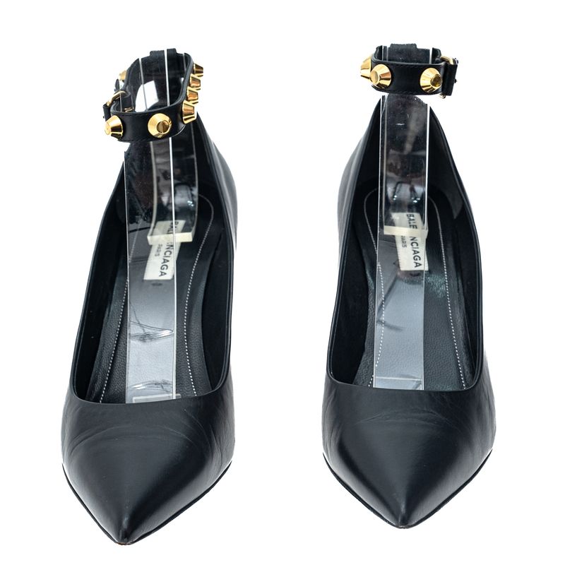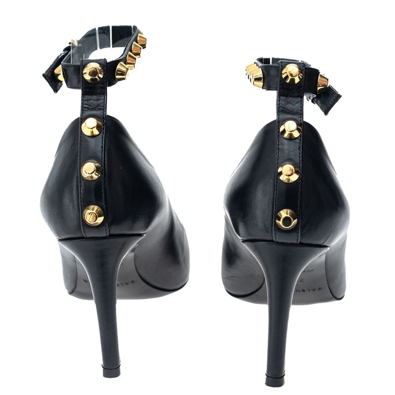 Scarpin Balenciaga Couro Preto e Tachas Douradas