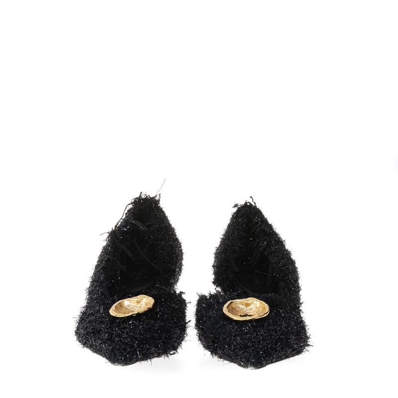 Scarpin Balenciaga Knife Tweed Preto Botão Dourado