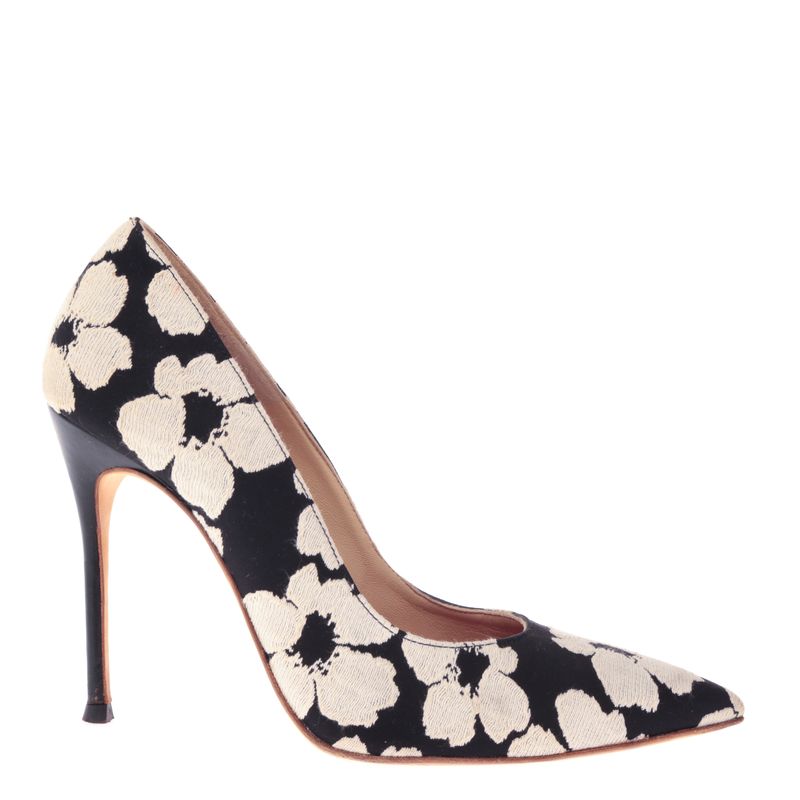Scarpin Carolina Herrera Floral Branco e Preto