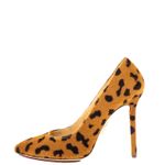 Scarpin Charlotte Olympia, confeccionado em pelo sintético com estampa de leopardo, bico fino, salto alto. A peça se encontra em estado satisfatório, com marcas de uso aparentes nas solas, desgastes nos bicos e calcanhar.