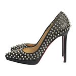 Scarpin Christian Louboutin Couro Preto Spikes Prata