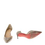 Scarpin da marca Christian Louboutin Iriza, tamanho sola 39 aproximadamente 37 Brasil. Confeccionado em couro coberto por glitter prateado, bico fino. Possui salto alto fino na altura 7 cm. A peça apresenta marcas de uso e desgastes nos solados e bicos.